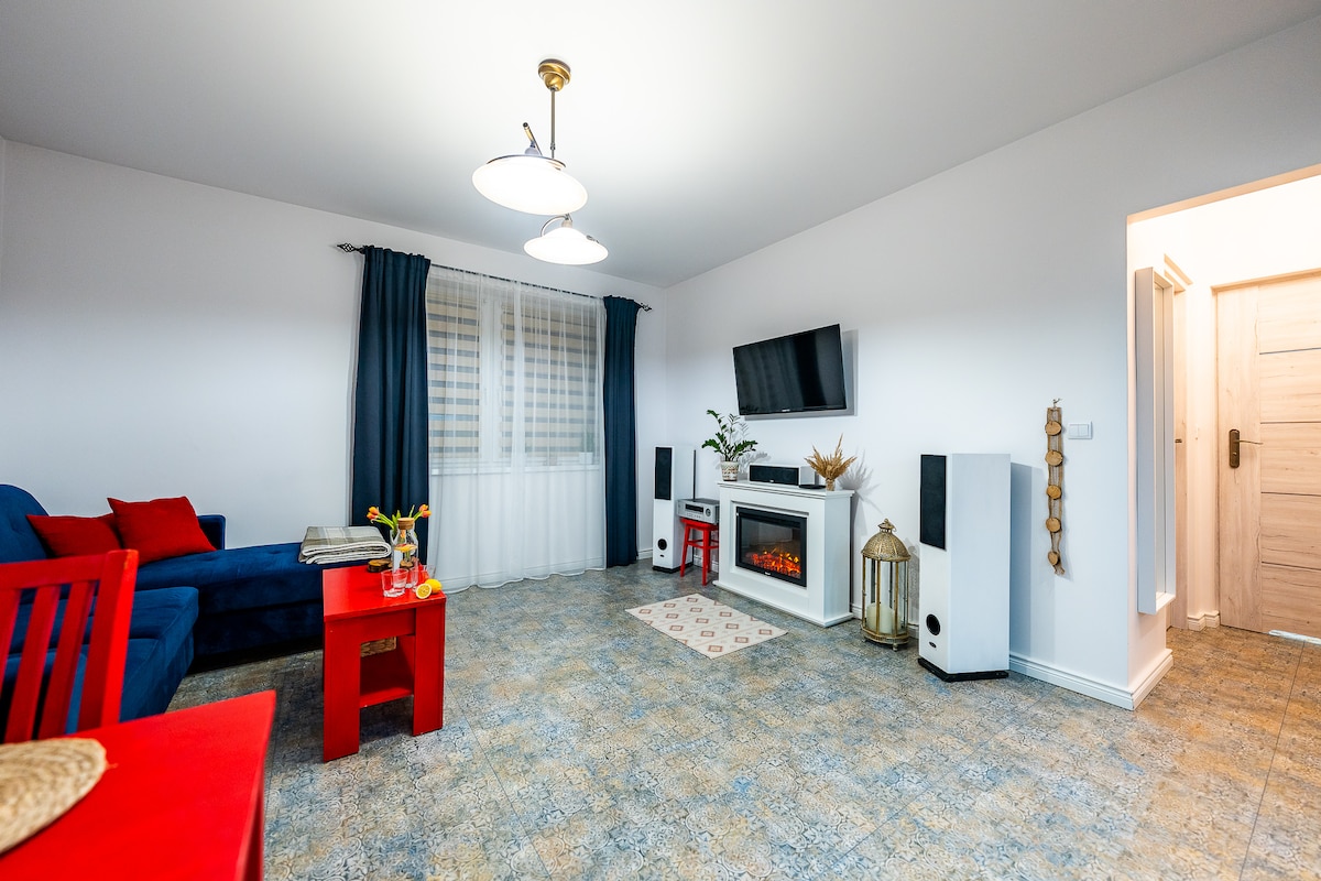 Modern och rymlig 2-rumslägenhet med balkong i ett lugnt område i Zabrze. Perfekt för familjer, par eller affärsresenärer. Lägenheten rymmer upp till 4 gäster och har två separata sovrum, ett bekvämt vardagsrum med smart-TV, Netflix och höghastighetsinternet, ett fullt utrustat kök och gratis parkering nära byggnaden. Njut av morgonkaffet på balkongen och snabb tillgång till Katowice och närliggande sevärdheter som Arena Zabrze.