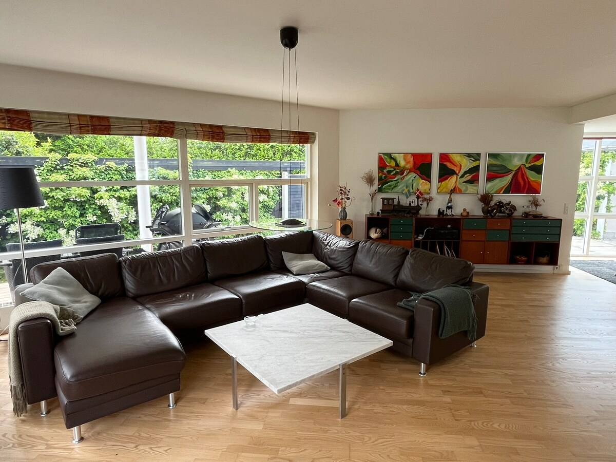 Vårt fridfulla boende ligger på en återvändsgränd bredvid en sjö. I det 180 m² stora huset hittar du 3 sovrum (2 med kontorsfaciliteter), 2 badrum (1 med jacuzzi), ett rymligt vardagsrum i öppen planlösning och en stor hall med gott om utrymme för skor, jackor och bagage. Njut av 4 terrasser, en utomhusgrill och pittoresk sjöutsikt. I närheten, utforska skogsstigar eller nå Köpenhamns centrum på 20 minuter med bil eller 30 minuter med tåg. Holte centrum, bara 15 minuters promenad bort, erbjuder lokala butiker och restauranger