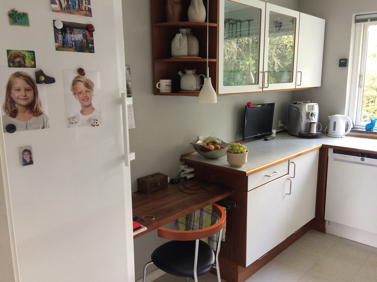 Huset har ett stort vardagsrum med gaskamin, kontor och uppvärmda golv. Sovrummet på övervåningen har dubbelsäng, nära badrummet. På nedervåningen finns en dubbelsäng i hörnet i ett ljust rum, med en toalett i närheten. Huset ligger i ett lugnt grannskap, med en fantastisk utsikt och 2 terrasser och en stor trädgård. Endast 9oo m från kollektivtrafik, stormarknad, bageri och snabbmatsställen. 30 min. från centrala Cph, med bil och max 1/2 timme med tåg från Holte station.
