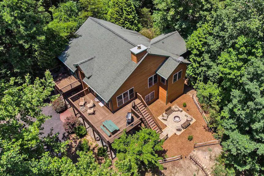 Med flera gemensamma utrymmen, generösa sovrum och gott om matplats rymmer detta hus bekvämt stora familjer, golfgrupper och bröllopsbesättningar! Efter en dags utforskning kan du kliva ut på däcket och sjunka ner i den privata bubbelpoolen. Det är det perfekta sättet att varva ner under stjärnorna och ladda upp inför nästa dags äventyr. Njut av ett fullt utrustat gourmetkök, höghastighets-Wi-Fi och dedikerad parkering. Detta hus ligger mycket nära till Rumbling Bald bekvämligheter.