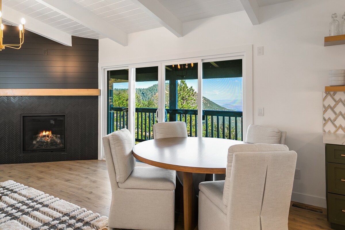 Välkommen till The Den, en stuga från 1960-talet som har gjorts om av LBL Design Co. Denna stämningsfulla, romantiska tillflyktsort blandar mandelblå tak, varma trätoner och moderna ytor – komplett med en privat bubbelpool under tallarna. Perfekt centrerad i San Bernardino-bergen, det är din bas för snöiga dagar, äventyr på vandringsleder och långsamma, mysiga nätter vid elden. Drick vin på däck, rosta s'mores under stjärnorna och varva ner bredvid den glödande eldstaden på vår plyschiga sammetsoffa.