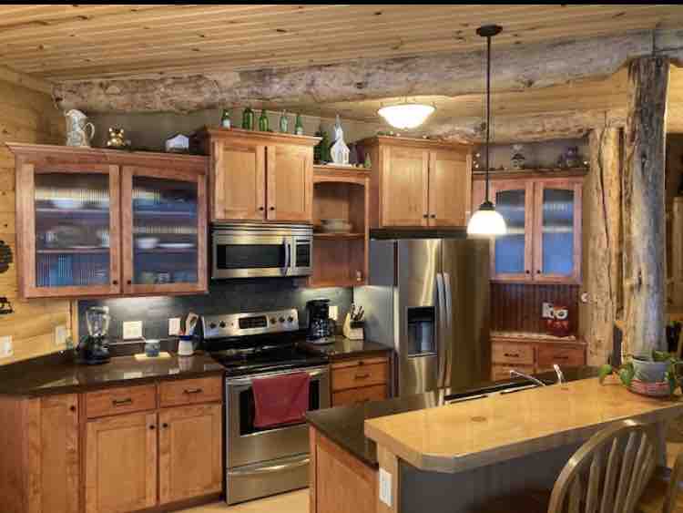 Located just 2.5 hrs east of the twin cities and 3.5 hrs north of Madison. Relax at this peaceful log cabin along the Jump River. Boasting 3 queen beds and 2 twin size ottoman pull out beds, a full kitchen, bathroom with walk in shower and laundry, and a one of a kind view of the Jump River from our river room. Located just a mile out of town for convenience. You’ll find an easy slope down to the river.