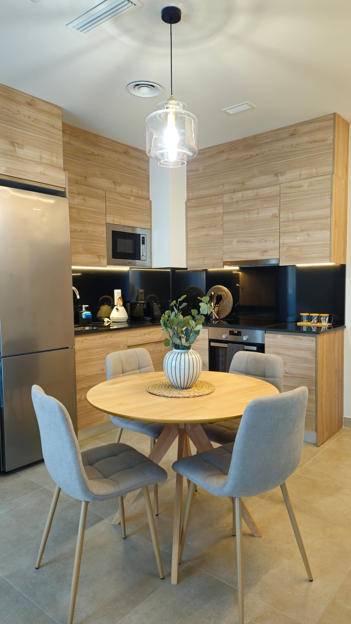Snygg nordisk design möter varmt spanskt boende i detta boende där djärva färger framhäver den moderna inredningen. Koppla av i de lugna öppna utrymmena eller loungen på den soliga balkongen med utsikt över gatorna. Du kan njuta av ett uppfriskande ögonblick i det rymliga badrummet eller förbereda dig en underbar måltid med det fullt utrustade och möblerade köket. Och när du är trött på din utforskande dag i staden, inget bättre än lugnet i sovrummet och den bekväma sängen.