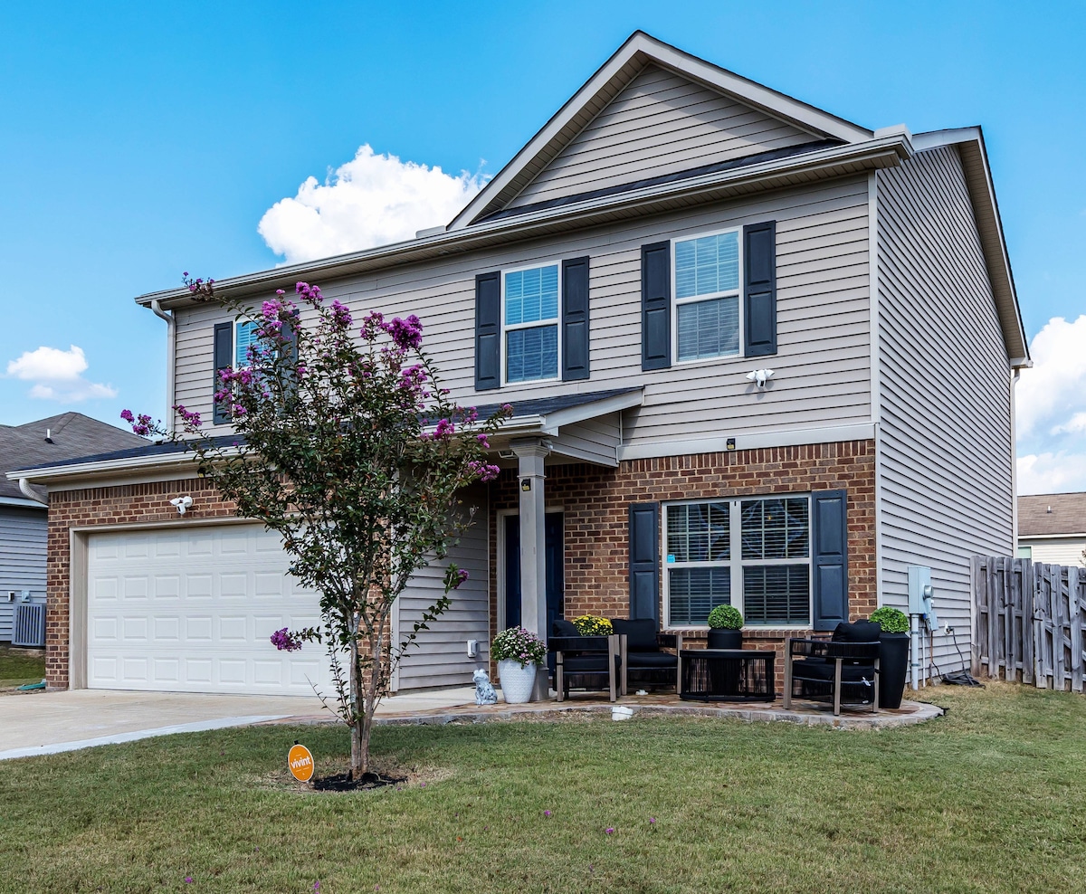 Välkommen till ditt mysiga lilla hem, värd för stolta amerikanska marinveteraner! Vi är hedrade att välkomna familjer som besöker nära och kära och resenärer som söker en unik vistelse. Upplev den perfekta balansen mellan lugnt lantliv med bekvämligheten av att vara bara 10 minuter från centrala Columbus och 14 miles från Fort Benning. Vårt rena, städade och välkomnande 399 kvadratmeter stora lilla hem är utformat för komfort och avkoppling.