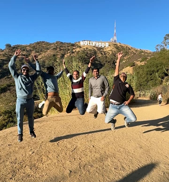 Snabb vandring till Hollywood-skylten med komiker och hundar