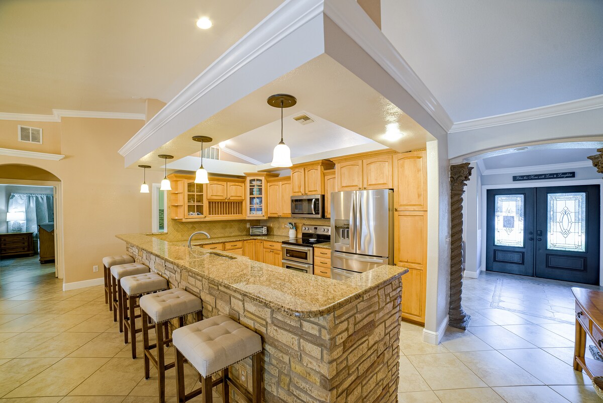 Om du är ute efter en familjeretreat är detta rätt ställe för dig! Poolen och uteplatsen ger dig gott om utrymme att spela eller koppla av. Uteköket ger dig möjlighet att grilla på Bull 38' i propangasgrill. Det här boendet är fullt utrustat för att göra din familjs vistelse stressfri. Obs: Vi älskar djur, men vi har inte det utrymme som de förtjänar; det kommer att bli en bot på 350 USD för eventuella husdjur som tas med. Från och med april 2024 kommer pooltemperaturen att ställas in på 80 grader året runt.