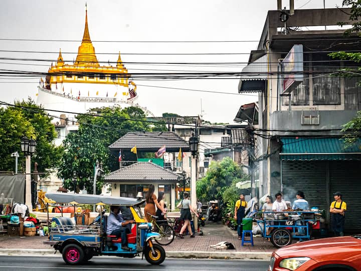 Nattliv i Bangkok: solnedgång på takterrasser, tuk-tuk och fest