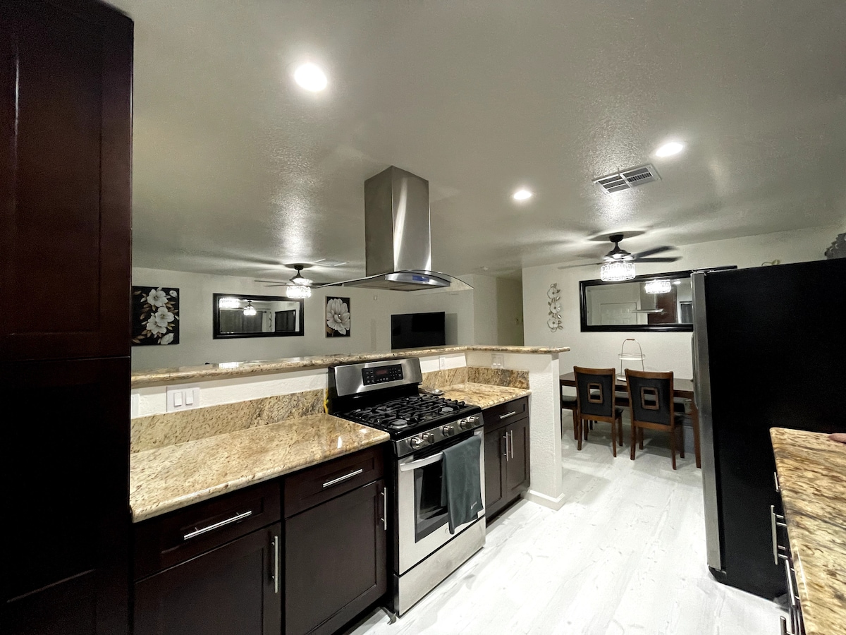 Välkommen till din ökenresa! Detta boende med 6 sovrum, 2800+ kvadratfot är 2,3 miles till Coachella festivalområde och är komplett med pool, spa, spelrum och poolbord, eldstad, utomhus boende och matplats, bbq/bar, och mycket mer. Tillbringa en helg vid poolen med att leka på putting green, grilla eller smutta på margaritas från en fåtölj medan du lyssnar på Sonos-högtalare utomhus. Inuti hittar du ett kockkök, smarta TV-apparater i alla sovrum och ett spelrum med biljardbord och arkadmaskin.