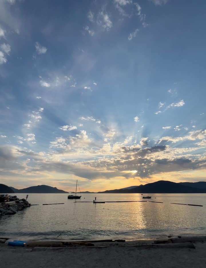Njut av solnedgången och stjärnorna vid Moraine-sjön