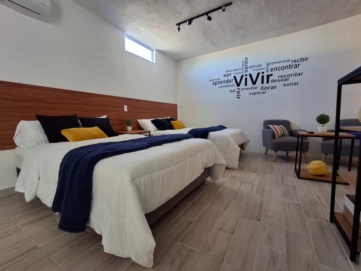 Njut av komforten i detta lugna och centralt belägna boende, bara 5 minuter från amerikanska konsulatet och kommersiella torg med fordon. Detta utrymme har ett sovrum, dubbelsäng, mini split varm/kall, utrustat kök, matrum, wifi, smart TV. Perfekt för kort- eller långtidsvistelser för både affärs- och fritidsresor. Dess strategiska läge gör det möjligt för dig att röra dig i staden med lätthet, oavsett om du vill arbeta, vila eller utforska.