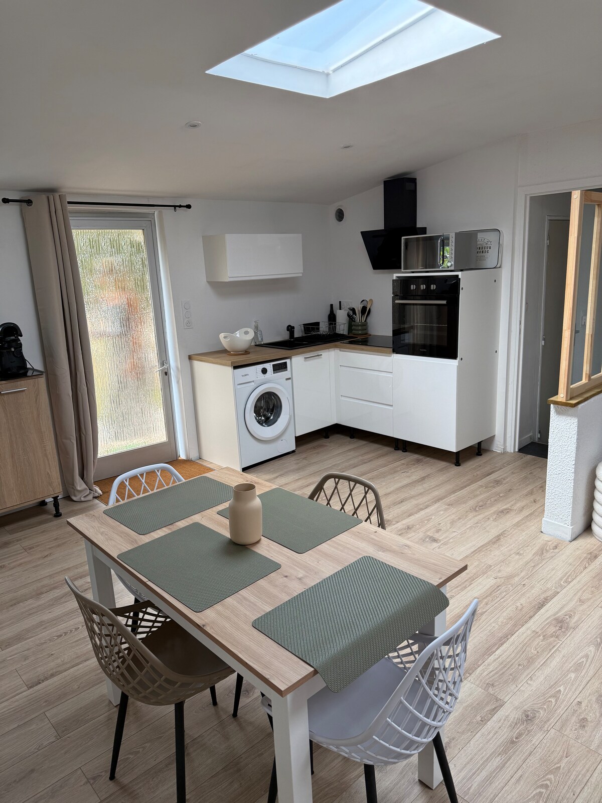 Vi välkomnar dig till vår möblerade duplex med alla bekvämligheter (42 m2), med separat ingång via en yttre trappa, med utsikt över en privat terrass på 10 m2. Lugnt, i en by, nära Lorient, kommer du att förföras av denna avkopplande utsikt över naturen. Perfekt för att koppla av efter att ha upptäckt många omgivande platser. Tesla-laddstationer 5 minuter bort. Promenadstigar och vackra stränder att upptäcka. För anställda på resande fot, anpassat pris, kontakta oss.
