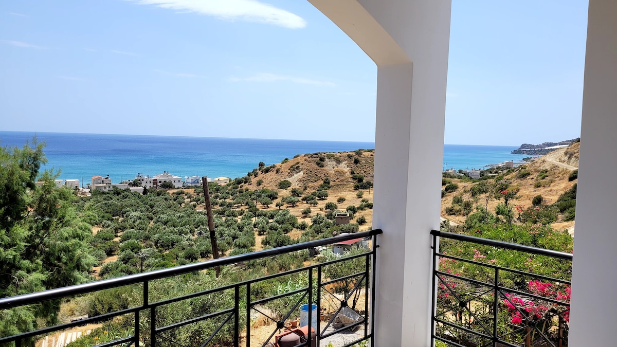 Vi hyr en lägenhet på översta våningen i vårt semesterhus. Från balkongen har du en magnifik utsikt över havet. Det finns en fin trädgård runt huset där du kan koppla av i yttersta lugn. Hängmatta och havsvågor i bakgrunden ingår. Du är bara ett par steg från stranden. Giannis strandhus i Keratokampos är den perfekta platsen att njuta av Kreta i fred.