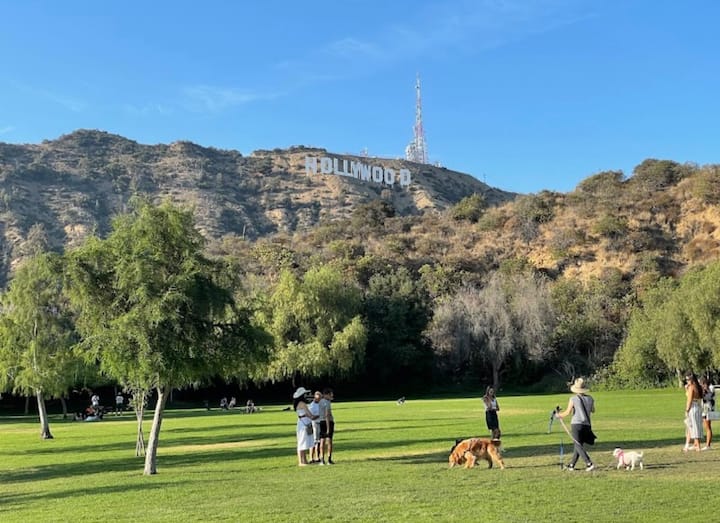 Vandring i solnedgången: utsikt över Griffith Park, Hollywood och staden