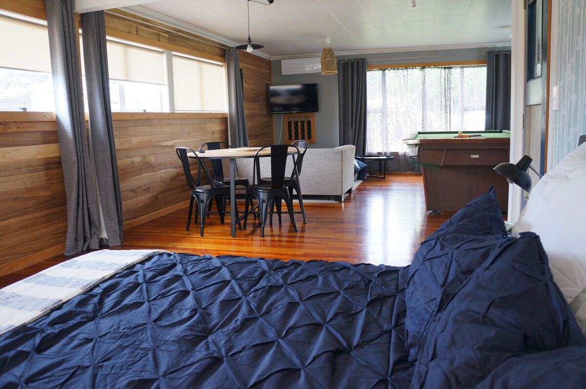 Fly till en oas av underhållning och avkoppling i detta unika spelrum. Perfekt beläget i ett lugnt halvlandsbygd Matangi läge. Inne i studion hittar du ett bekvämt pentry utrustat med kylskåp, mikrovågsugn, ugn/spis, brödrost och kanna. Du hittar ett biljardbord för oändlig underhållning och andra kortspel för vänliga tävlingar. 1 km till vår lokala 4 Square har du den ultimata flexibiliteten att laga mat själv i din bekväma studio eller utforska lokala restauranger/attraktioner.