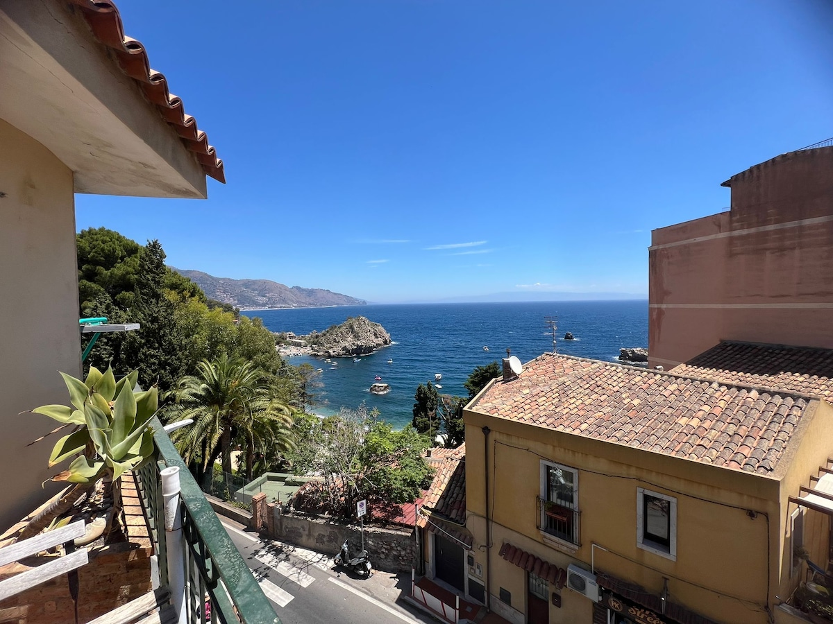 I centrum av Taormina, ca. 100 kvm på tredje våningen i en bostad nedsänkt i en hundraårig park. Utrustad med en pool med utsikt över havet, en stor panoramaterrass med möbler. Stort vardagsrum med matplats, 2 sovrum med dubbelsäng och bäddsoffa, 2 badrum med dusch och bidé, kök utrustat med mikrovågsugn, spis, kylskåp, vattenkokare. Luftkonditionering, uppvärmning, wi-fi, LCD-TV, lakan, handdukar och strandhanddukar ingår. Reserverad täckt parkering med direkt tillgång.