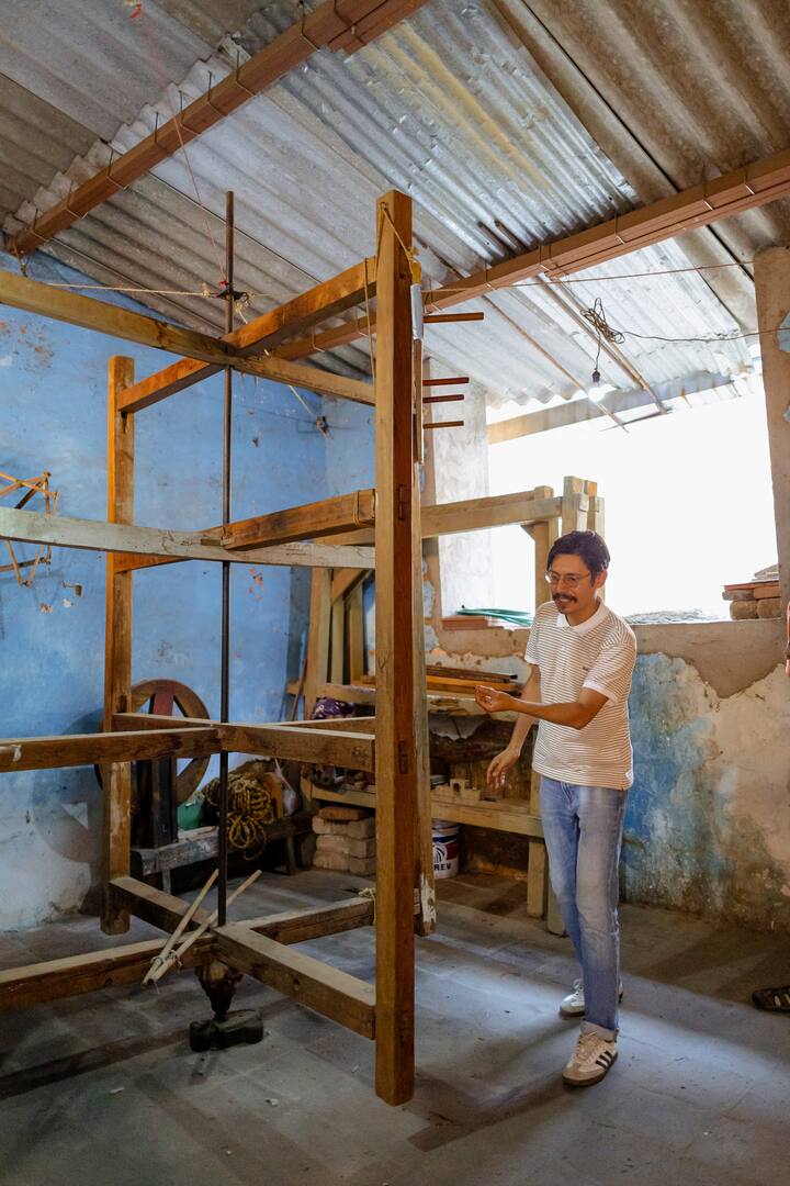 VÀv ett pÀrlarmband pÄ en vÀvstol