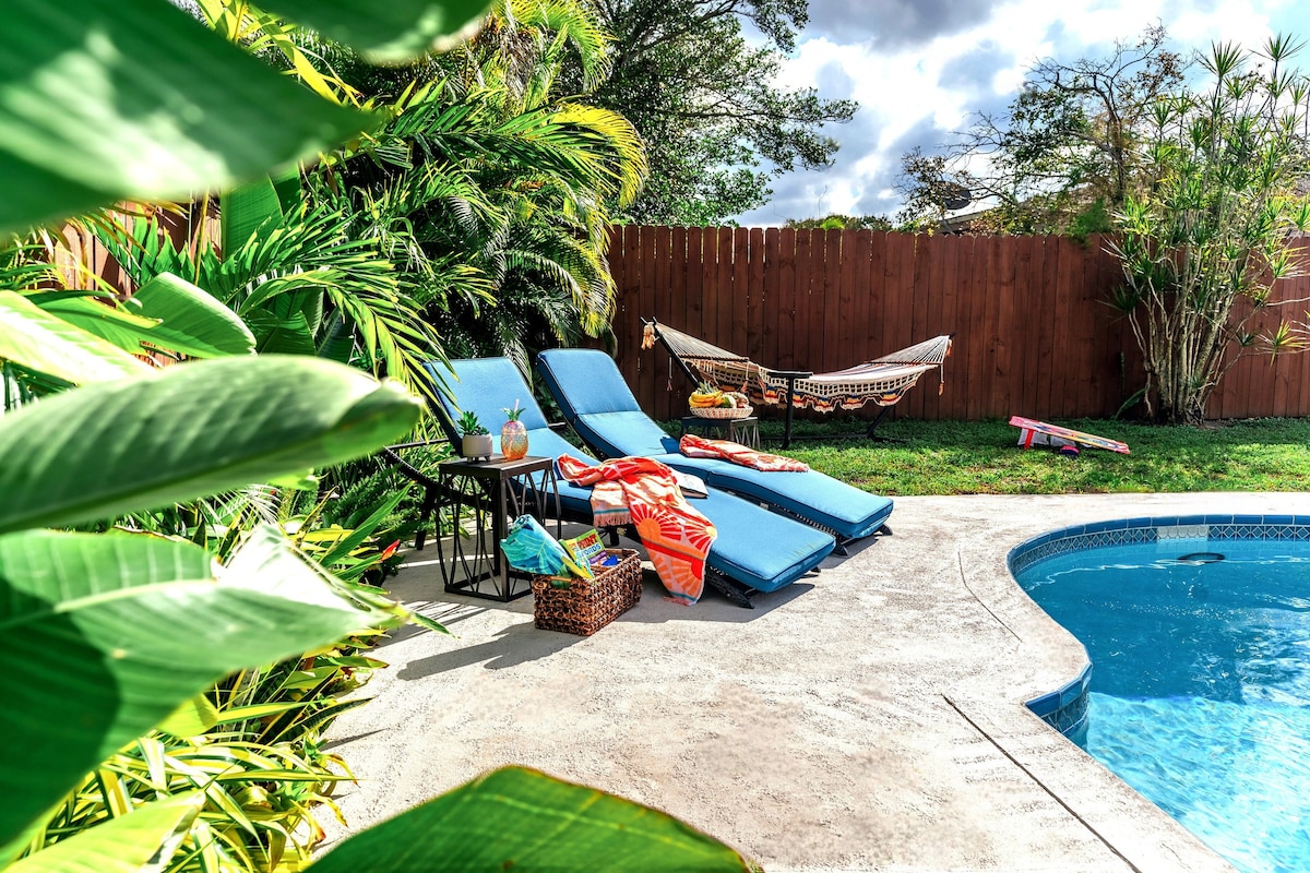 Välkommen till vår moderna tropiska oas, där urban bekvämlighet möter resort-liknande bekvämligheter. Detta boende kan bekvämt sova 9 personer, med 3 sovrum, 2 badrum, ett färgglatt spelrum, inbjudande vardagsrum och ett fullt utrustat kök. Gå ut i den expansiva bakgården, komplett med en minigolfbana, bubbelpool och ett charmigt lusthus med grill. Det är en perfekt tillflyktsort för oändlig underhållning och oförglömliga minnen, och bara några steg från många SoFlo-attraktioner.