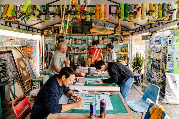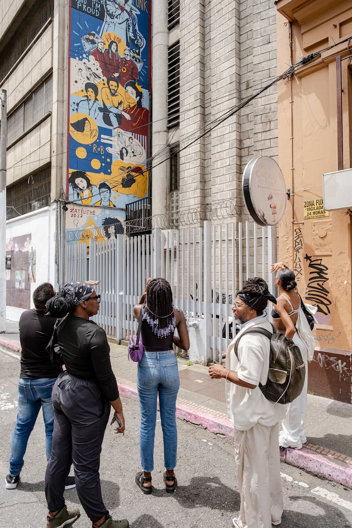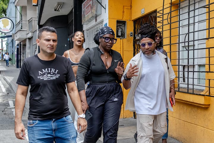 Afro-colombiansk gatukonst och mat med en väggmålare