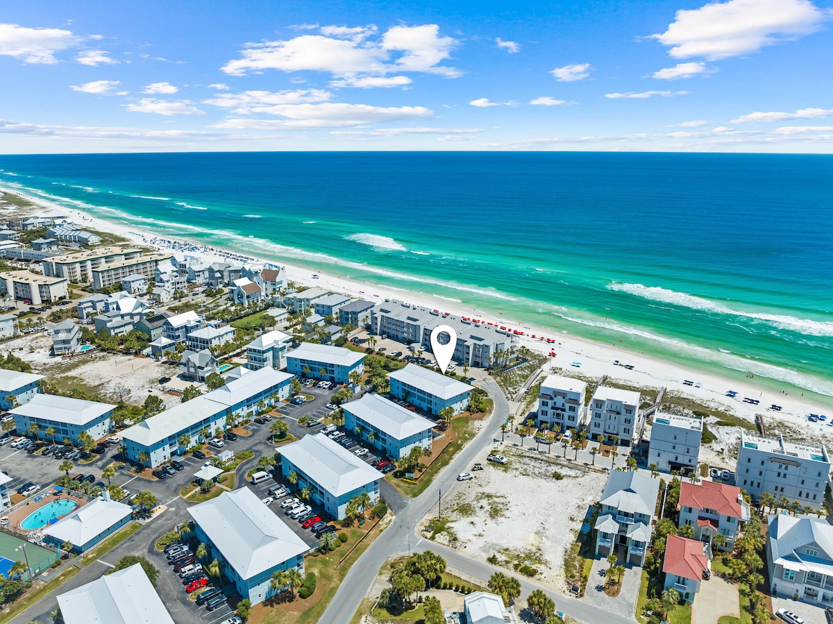 Vacker, renoverad lägenhet i Seagrove Beach! Steg från stranden & Cafe Thirty-A, och många andra lokala favoriter! Bara en kort (1-2 mil) cykeltur från Seaside, Publix, butiker och restauranger. Pooler och tennis banor på plats. Det är perfekt för ett par eller en liten familjestrandsemester. Vi är öppna för att hyra direkt till gäster 18+ (dvs. högskole- eller gymnasieelever; barn som reser med familjer är också välkomna, naturligtvis!) Se policyer och regler för mer information.