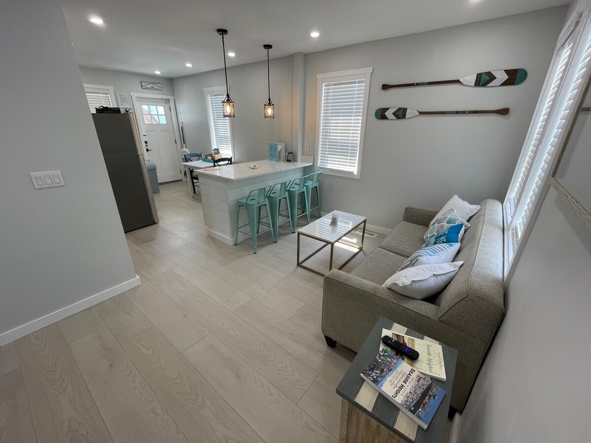 Enhet #1 | modern, och lyxig nyrenoverad lägenhet på nedervåningen, perfekt för familjer och vänner. Beläget bara 1,5 kvarter från strandpromenaden och stranden (ca. 5 minuters promenad). Inkluderar parkering utanför gatan för 1 bil + 1 parkeringskort. Innehåller helt nya vitvaror i rostfritt stål, ett fullt utrustat kök med diskmaskin, tvättmaskin och torktumlare, smarta TV-apparater, USB/USB-C-uttag, gratis Wi-Fi, dedikerat arbetsutrymme, alla sängkläder och handdukar, + 6 strandbrickor, 6 strandhanddukar, en strandvagn och 6 strandstolar + utomhuseldstad