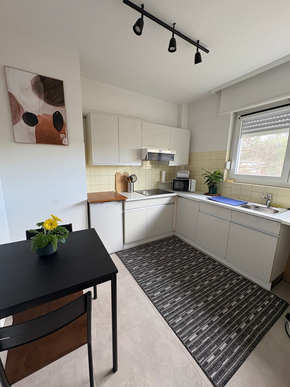 Denna eleganta och fullt utrustade lägenhet i Eimeldingen är det perfekta stället för affärsresenärer och semesterfirare. Lägenheten ligger på 2: a våningen i en lugn 7-våningsbyggnad (med hiss) och erbjuder allt du behöver för en bekväm vistelse på 42 m².