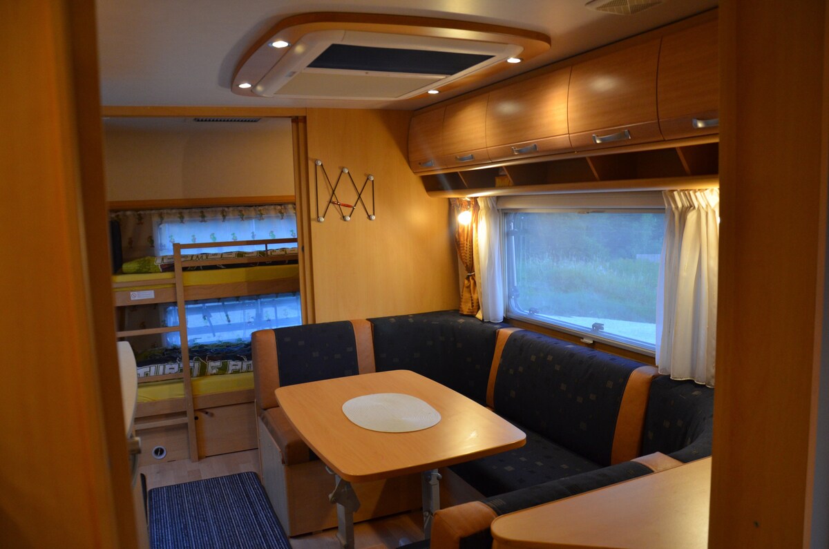 🏕 Glamping Upplevelse för 2 vuxna och 1–2 barn. Mysig husvagn med rymlig markis, matbord och soffa, privat tvättstuga med dusch, toalett och handfat. Utomhuskök med induktionshäll och kolgrill. Eldstad för mysiga kvällar, terrass med solstolar och fantastisk utsikt. Perfekt för lugn, natur och avslappnade stunder. "Pyhrn-Priel-regionen glädjer med berg, sjöar och utomhusäventyr – perfekt för vandring, cykling, skidåkning, snowboard och oförglömliga utflykter."