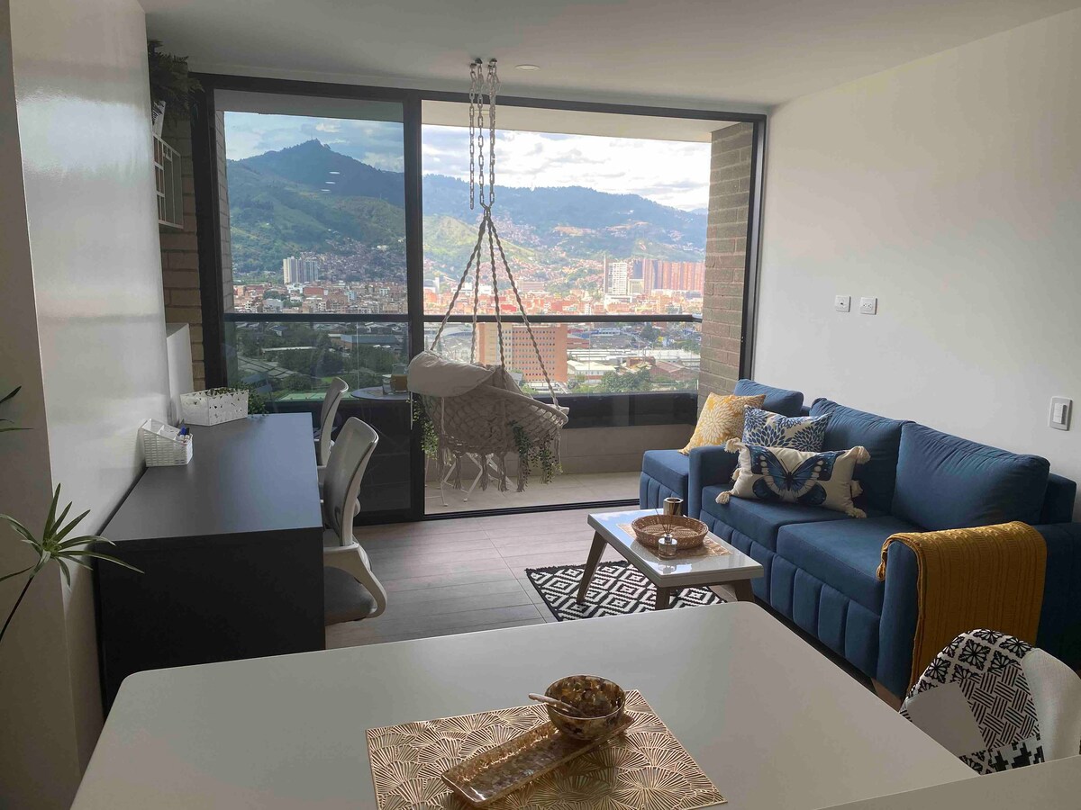 Vacker studiolägenhet i Sabaneta. Med gemensamma utrymmen som coworking, jacuzzi, bastu och turkiskt bad Gå till Sabaneta-parken och njut av bra restauranger, stormarknader, gym. Några minuter med bil eller till fots hittar du CC Mayorca och du kommer att vara nära tunnelbanestationen. På platsen hittar du bra internet för distansarbete och allt du behöver för att känna dig som hemma.