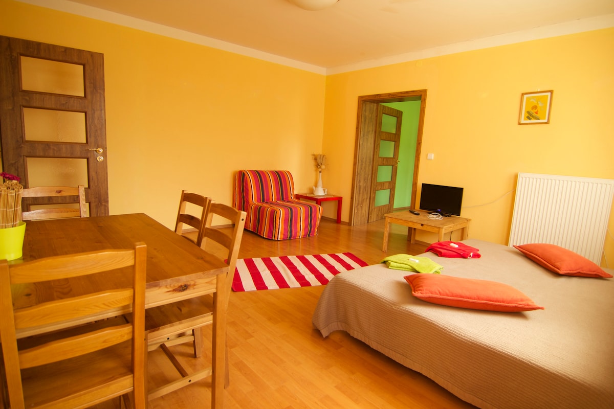 We accommodate guests from 2 nights and 4 people (we are open to make an exception if you pay the rest of difference). During the summer months (July and August) we accommodate guests only in week cycles from Saturday to Saturday We would like to invite you to our new family apartment. Close to the national park Czech Switzerland with a fabulous nature. In the apartment you can find a guide around Czech Switzerland. The apartment is huge, 70+ m². Child pays regular price