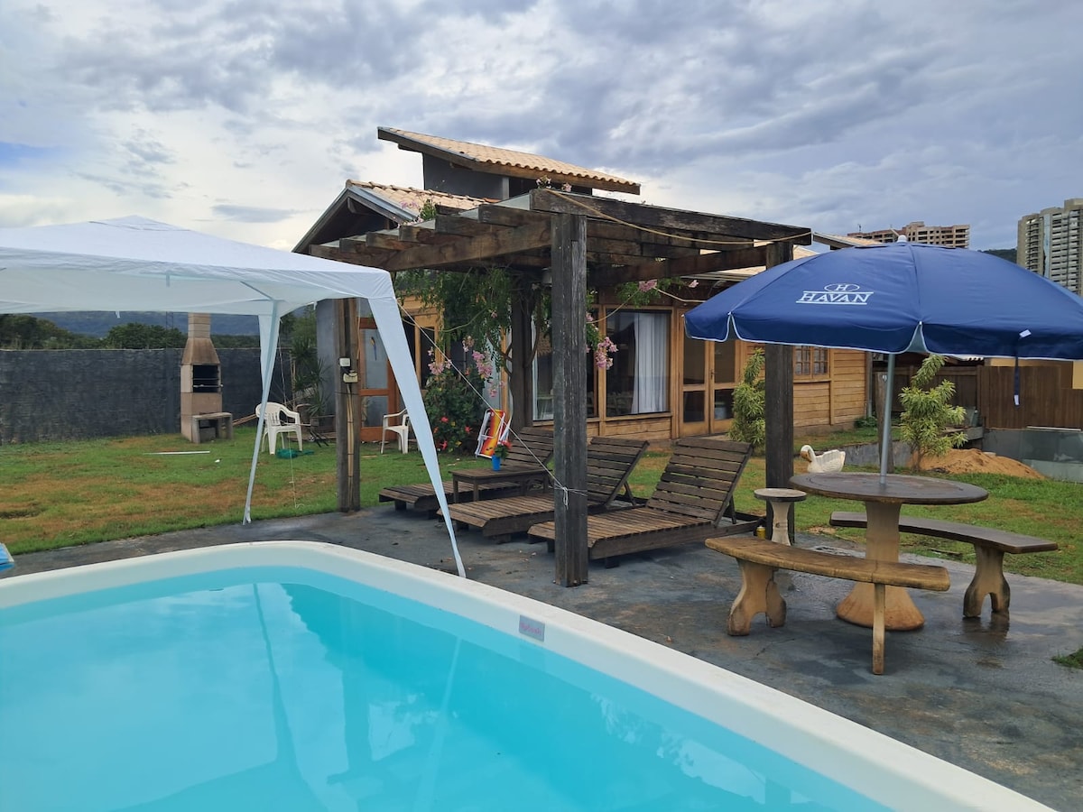 Não é permitido caixas de som Relaxe com toda a família , ambiente tranquilo. Chopeira Naja Cozinha equipada com 2 geladeiras, forno elétrico, microondas, Aifryer, sanduicheira elétrica, cooktop 5 bocas,utensílios essenciais. 3 quartos sendo 1 suite com cama de casal e 1 cama de solteiro,segundo quarto com 1 cama de casal e 1 beliche, terceiro quarto com 1 cama de casal e 1 cama de solteiro .Alem do banheiro da suite, possui 2 banheiros sociais com banho