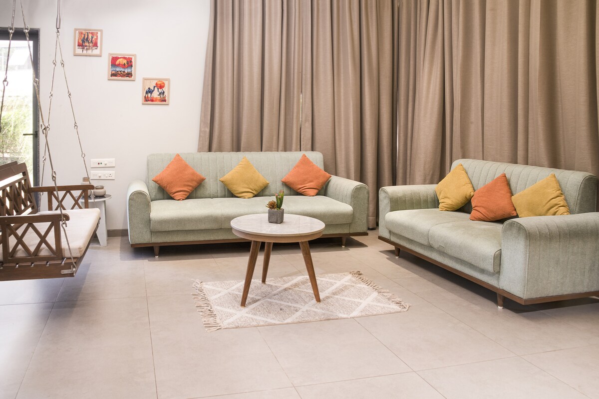 Fly till denna fridfulla 2BHK strax utanför Udvada stad – perfekt för avkoppling medan du håller kontakten. Njut av höghastighets Wi-Fi, TV med soundbar, ett fyllt kök, snacks, filtrerat vatten, tvättmaskin, torkställ och mysig inredning. Självincheckning via låsbox gör ankomsten enkel. Zomato och Swiggy levererar hit, och lokal resehjälp är bara ett meddelande bort. En perfekt vistelse för familjer, par eller ensamresenärer.