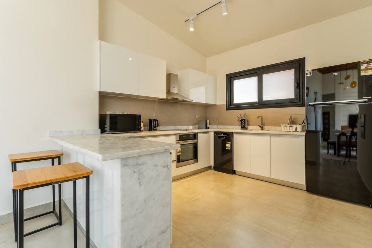 Modern Beachfront 1BR Loft med trädgård i Somabay