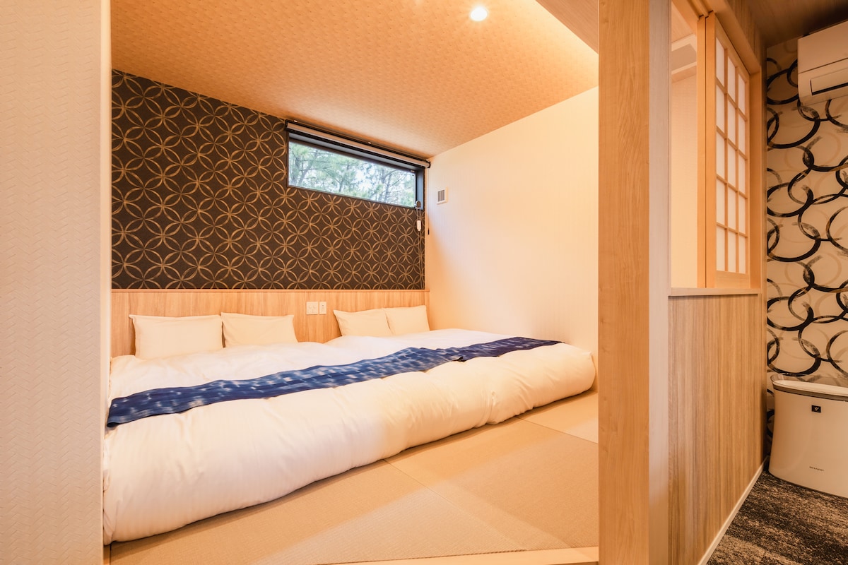 Detta är ett lugnt rum i loftstil 1K beläget i det historiska Sumiyoshi-området i Fukuoka. Vi erbjuder det perfekta boendet för dem som vill tillbringa en lugn och bekväm tid med sightseeing eller affärer. Bekväm åtkomst 6 minuters promenad från busshållplatsen "Sumiyoshi" Bra tillgång från Hakata station - Bekvämlighetsbutik - 1 minuts promenad Rumfunktioner Loft typ 1K: kompakt men öppet utrymme Sängarrangemang: 1 våningssäng: rymmer upp till 5 personer (1 extrasäng och 2 futonuppsättningar tillgängliga) * Kontakta oss i förväg om du vill bo med 3 eller fler personer Bekvämligheter: Gratis WiFi, luftkonditionering Stadsinformation Sumiyoshi-helgedomen: Rekommenderas för en promenad för att uppleva historia och kultur Canal City Hakata: en stor anläggning som är bekväm för shopping och restauranger Rekommenderade användningsscenarier Affärsresor eller resor för par Små familjevistelser (för dem som kan vara tysta) Andra sevärdheter Det kan också rymma långtidsvistelser och distansarbete. Köket och tvättmaskinen är tillgängliga, vilket gör det bekvämt för medellånga till långa vistelser som affärsresor och utbildning. Tillgång till Tenjin och Fukuoka flygplats är också bra, och det kan användas för ett brett utbud av sightseeing och affärer.