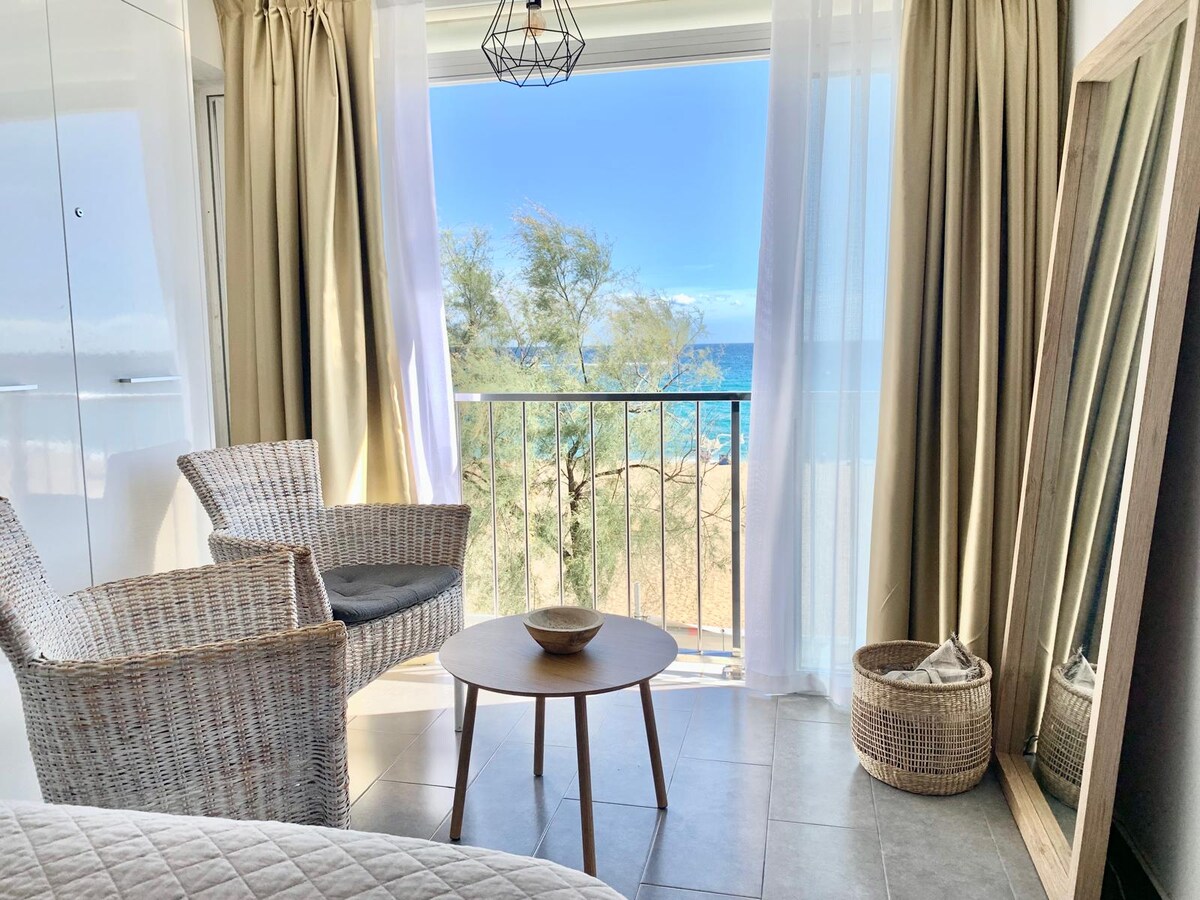 En exklusiv upplevelse vid vattnet med en exceptionell utsikt i en charmig lägenhet nyrenoverad 2023 med alla moderna bekvämligheter (fullt utrustat kök, luftkonditionering, wifi, Netflix, kvalitetssängkläder, osv.). Dess unika utsikt och stora balkong ovanför havet kommer att ge dig oförglömliga minnen av vågornas ljud. På plats: stor pool, privat garage. På promenadavstånd: stormarknad, strandbar-restaurang, vandringsleder.
