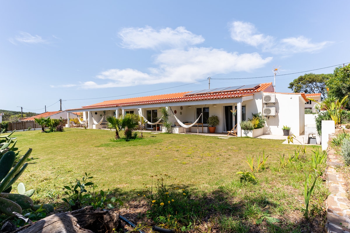 En fantastisk modern villa som rymmer 10 personer. Privat uppvärmd pool med saltvattensystem. Beläget i Espartal 1 km från några av de bästa stränderna i Västeuropa, med utsikt över Monchique-bergen. Om du gillar surfing, fiske, vandring, kanot, friluftsliv och uppskattar god mat, kom! Detta område erbjuder ett riktigt speciellt bohemiskt sätt att leva... ett måste att bo på som blir mer och mer populärt. Du kommer säkert att komma tillbaka om och om igen. Njut!!