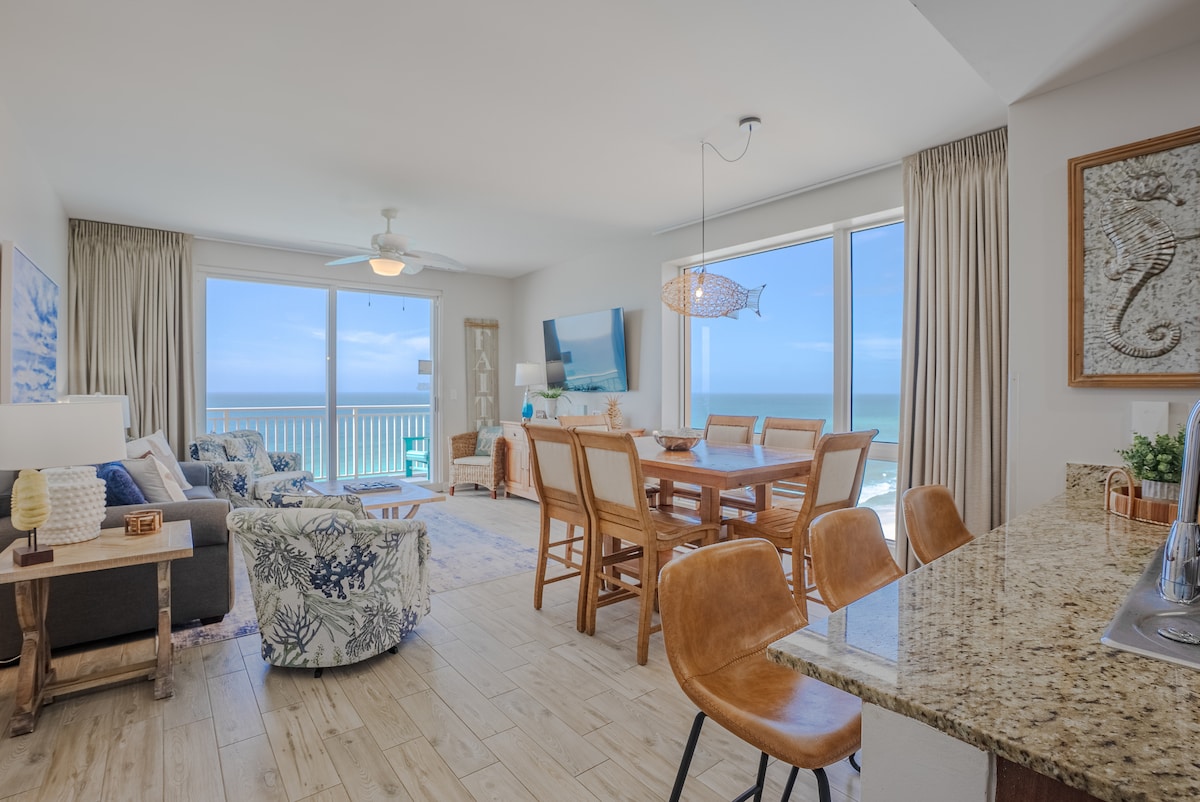Upplev den ultimata strandnära tillflykten i denna studio vid havet, som erbjuder fantastisk utsikt över Emerald Gulf. Börja dagen med en kopp kaffe på din privata balkong medan du tittar på delfiner som simmar förbi. Semesterorten har otroliga bekvämligheter, inklusive 5 pooler, 3 bubbelbad, en biograf, gym, tennisbana, Starbucks, H2O Bar & Grille och drinkar vid poolen. Studion har en dubbelsäng, matplats, fullt utrustat kök, modernt badrum, 65" Raku Smart TV och tvättmaskin/torktumlare i enheten.