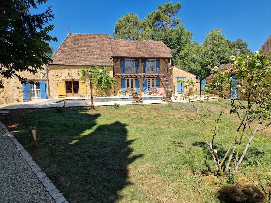42 tunnland egendom i ett stycke på toppen av en kulle bestående av en 1700-tals "Chartreuse" (karteusisk kloster typ typiskt lokalt hus). Vacker park, saltpool, tennisbana belägen i den mest attraktiva delen av Dordogne (Black Perigord). Huset är också listat i den lokala guiden ,Le Guide du Périgord (Périgord Guide) AUTENTISKT, GENUINT, FÖRTROLLANDE OCH LYXIGT HUS I CENTRUM AV GÅRDEN.