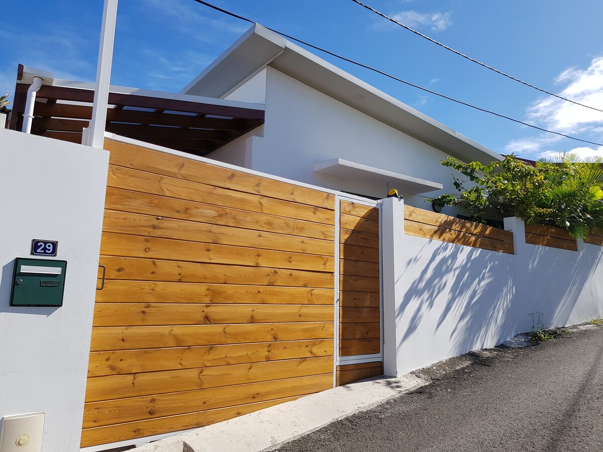 Längs Rivière du Mât Les Hauts, välkomnar denna vackra kreolska hydda dig omgiven av sin trädgård, nära alla bekvämligheter, i en lugn och familjär miljö. En enkelsäng (i sovrummet) kan flyttas till vardagsrummet om det behövs (tilläggsavgift på 20 €). Denna kokong har en privat parkeringsplats och har all komfort (tvättmaskin, mikrovågsugn, induktionshäll, wifi). Vi ser fram emot att välkomna dig till en trevlig vistelse. På återseende! Marie-France