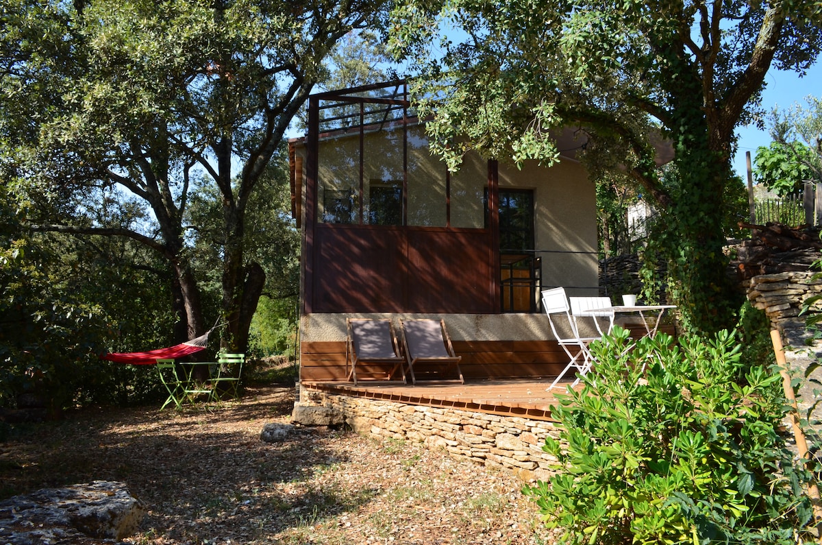L'Oasis, en sällsynt plats för naturälskare mitt i en olivlund på 1 hektar mellan Uzès och byn Collias. I detta lilla hus av sten från Vers med sin helt autonoma privata terrass, solenergi och borrning, hittar du lugn och ro. På morgonen kommer påfåglarna att hälsa på dig och önska dig en trevlig dag. Gardon och Alzon ligger i närheten för att bada och en pool som vi delar, kommer att svalka dig under sommardagarna