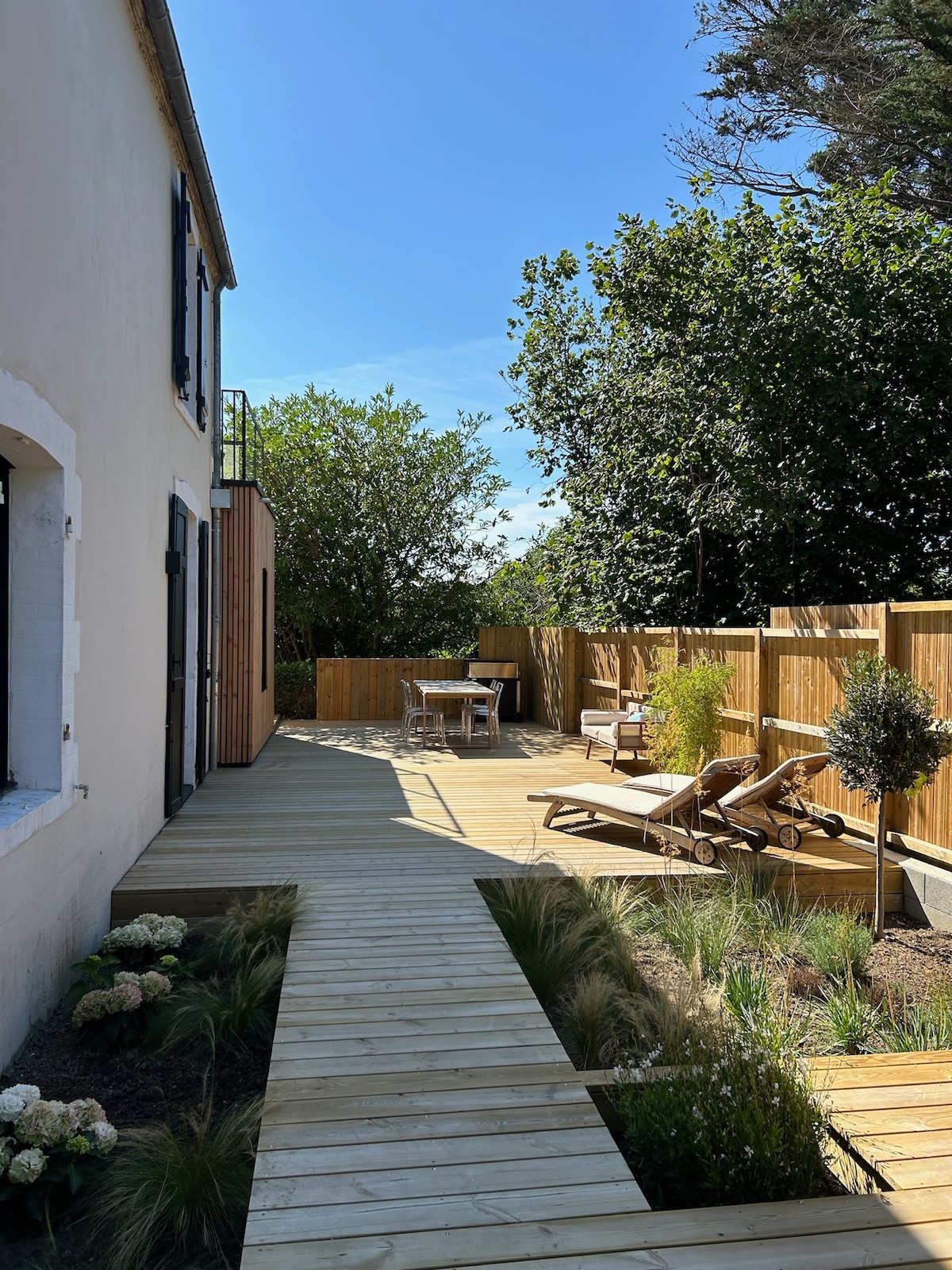 Upptäck Ker Broc'h, ett nytt arkitekthus (träkonstruktion). Denna varma och ljusa bostad erbjuder 150 m² bostadsyta, en 70 m² terrass i söderläge och en 500 m² trädgård. Idealiskt beläget 5 minuters promenad från stränder, butiker och restauranger, är detta 4* listade hus det perfekta stället för en helg eller semester med vänner och familj. Avkoppling eller sportaktivitet på programmet (5 minuters promenad till Dinard Golf och GR 34).
