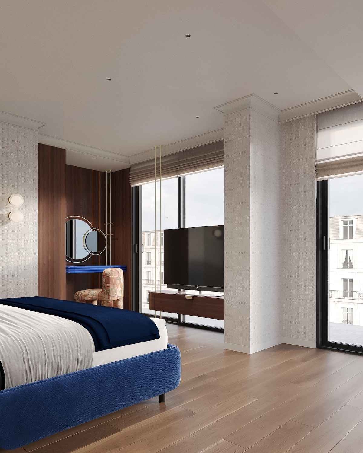 Denna studio kombinerar ursprungliga stendetaljer med en elegant, modern design. Utrymmet är genomtänkt ordnat för komfort, med en stor dubbelsäng och ett kompakt pentry för enkelt boende. Den raffinerade inredningen och den harmoniska färgpaletten återspeglar karaktären i det femtonde arrondissementet och skapar en lugn och inbjudande parisisk tillflyktsort.