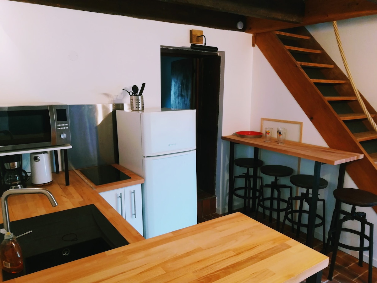 Organiserad som en duplex, består din bed and breakfast av ett sovrum och ett angränsande badrum, och ett vardagsrum utrustat med ett kök. Inredningen kombinerar tradition och modernitet, med de ursprungliga sten- och terrakottagolven tillsammans med målningarna av en samtida konstnär. Dessa två utrymmen totalt ett vackert område på 40 m2, de är anslutna med en magnifik gjutjärn spiral trappa som kan vara mycket smal! Privat parkering tillgänglig mot en extra kostnad.