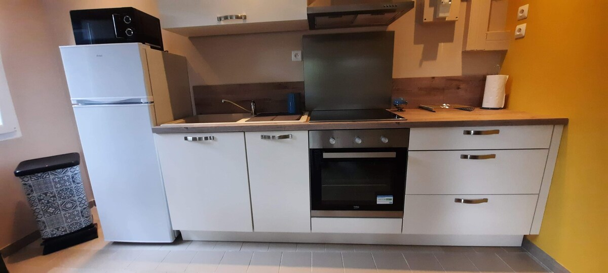 EXTRA AVGIFTER... 0 euro... mountainbike, jacuzzi 6/pers i trädgården 60 m2 fullt utrustat hus med utsikt över innergården WIFI (int/ext) Fullt utrustat kök: porslin, kaffebryggare, brödrost, mikrovågsugn, kylskåp, linne, hus, vardagsrum , TV, ljud. 1 stort sovrum (bb säng, eller inte) 1 sovrum, 2 sängar Badrum (duschkabin för 2 personer) Uteplats med: matplats, avkoppling och grillplats KAMERAÖVERVAKNING: på entrégate och bilgård. MOUNTAINBIKE, JACCUZI 6/PERSON TILLGÄNGLIG GRATIS