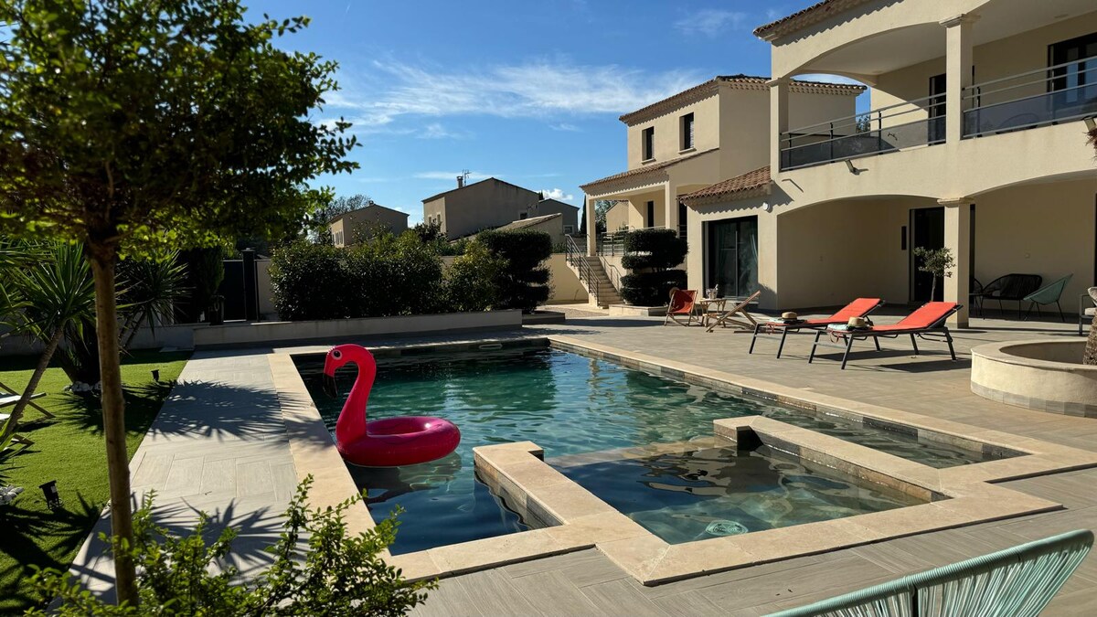🌿 Villa Émeraude – Saint-Étienne-du-Grès Enjoy a peaceful stay in a comfortable property with a secure heated pool and summer kitchen. - Main house sleeps 8 - Second house sleeps 4 additional people 👉 Total capacity: 12 people 👉 Second house available for groups of 9 or more. 🌞 Large, wooded garden with Provençal charm (Bonus: Petanque court - Fitness room) Ideal for families and friends seeking comfort, tranquility, and proximity to the Alpilles mountains.