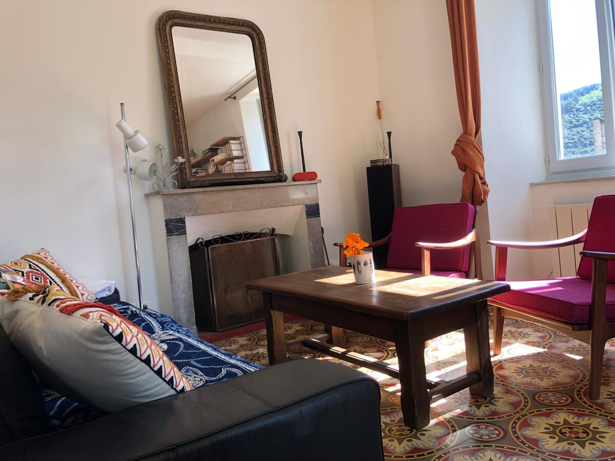 I hjärtat av nationalparken Cévennes, klassad som Unesco världsarv, traditionellt hus i en autentisk by i Cévennes. Beläget på Stevensons väg, är det en idealisk utgångspunkt för natur- och vandringsentusiaster. Sydvästlig riktning, genomgående, ljust boende, gammal charm, cementplattor .. Några minuters promenad till traditionellt bageri, livsmedelsbutiker, tidningar, kaféer och restauranger, grönsaker. Bad i floden, kommunal pool.