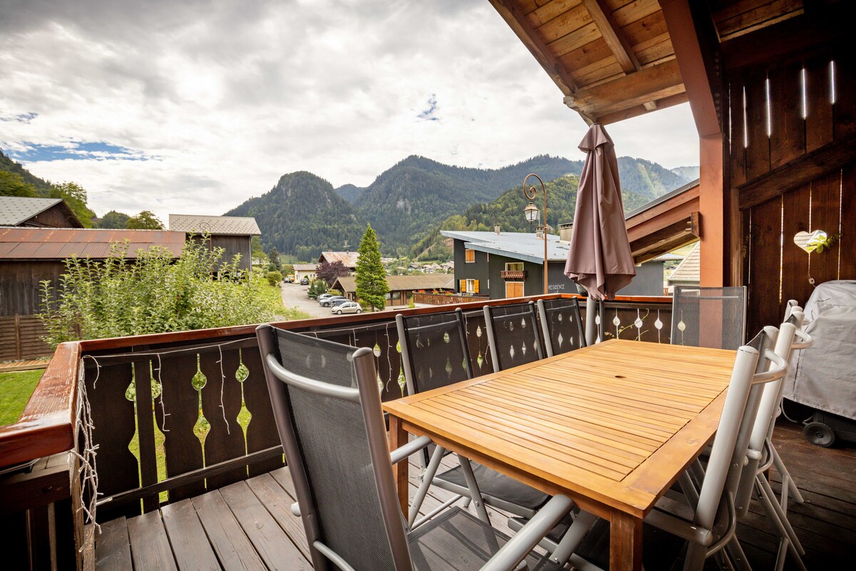 80 m2 Chamonix centrum, panoramautsikt M-B, trädgård.