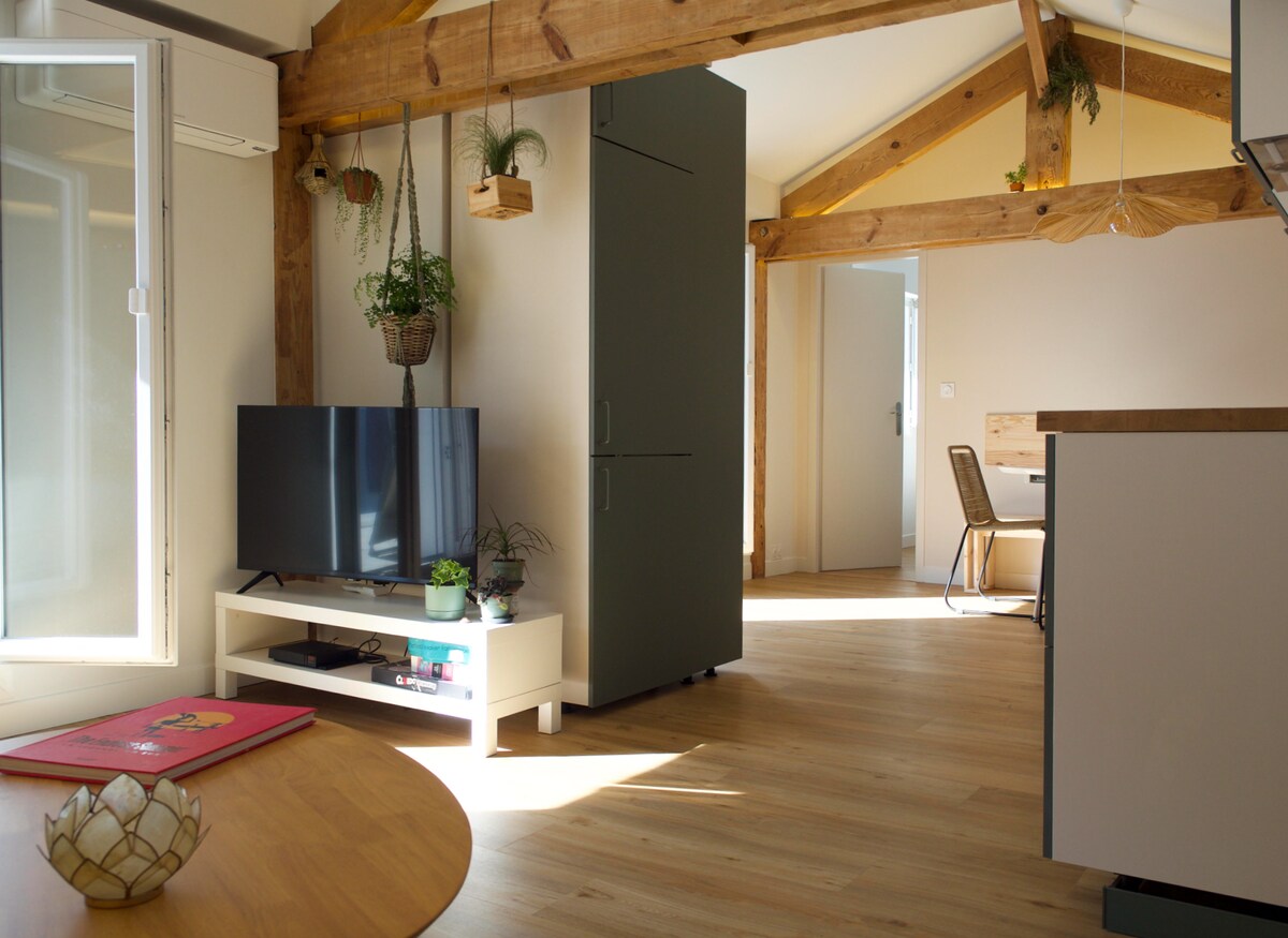 Välkommen till min helt renoverade lägenhet, som ligger på bottenvåningen i ett charmigt baskiskt hus i hjärtat av Saint-Jean-de-Luz. På gårdssidan väntar en vacker terrass för dina måltider. Du är i en liten villagränd i ett lugnt område, nära den historiska stadskärnan och Halles distriktet (mycket populär för sin livliga atmosfär och typiska restauranger). Stranden och butikerna på Gambetta Street ligger inom 10 minuters promenad. Perfekt för en bilfri semester!