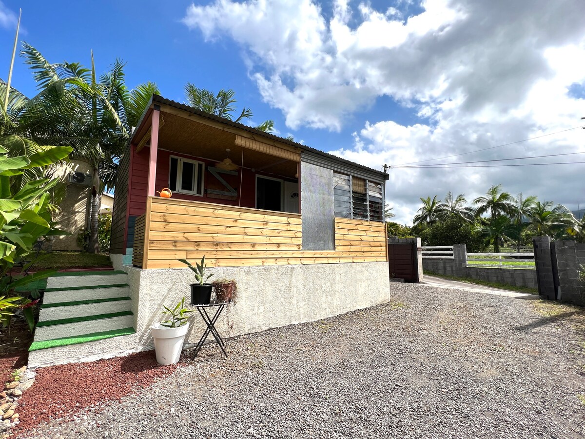 Mysigt trähus, perfekt läge för att upptäcka den södra delen av ön. Rymlig och bekväm, 4 sovplatser: 2 sovrum, vardagsrum, vardagsrum, kök, stor terrass och trädgård. Nära till alla butiker till fots och större vägar. Beläget på en höjd av 400 m, perfekt i Reunion. St Pierre (10 min) , vilda söderut, vulkan (1 timme), västra stränder (45 min). Mitt boende passar för par, ensamresenärer eller affärsresenärer, men passar inte för barn under 12 år.