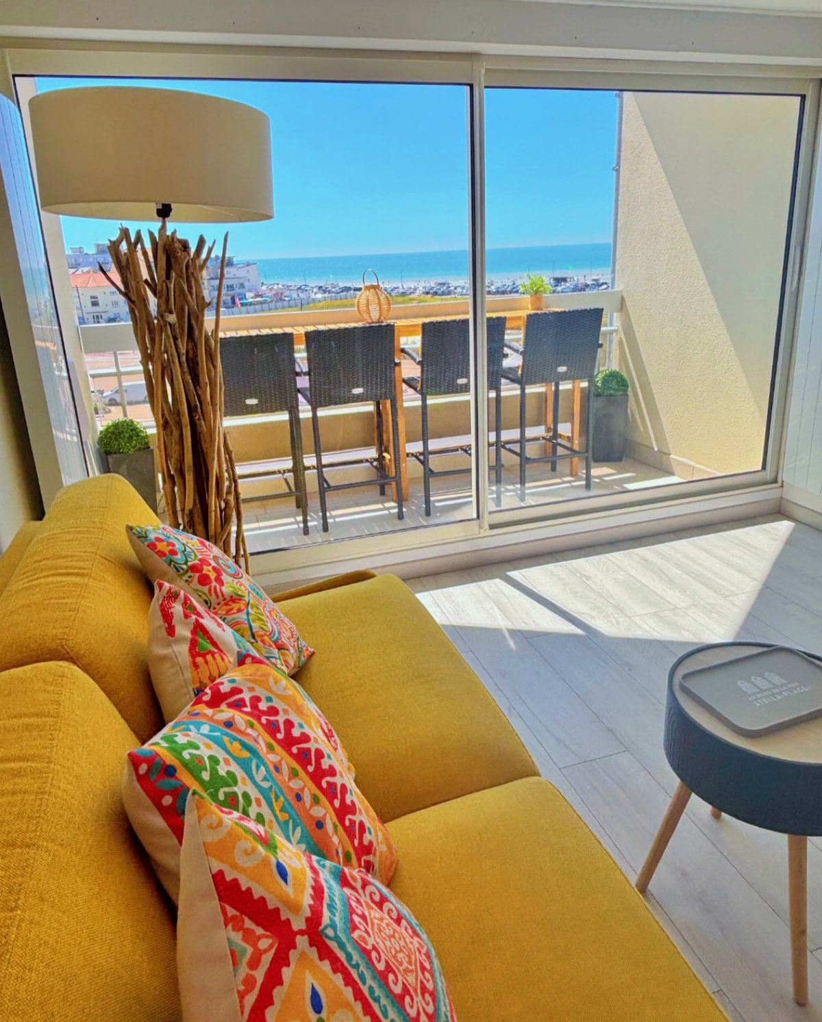Ät frukost, läs, begrunda havet 🌊 från vardagsrummet i denna mysiga lägenhet med balkong på Opalkusten med självincheckning. ✅ Höjdpunkter 🌅180° havsutsikt 🪟 Stort fönster och 6 m² balkong 🚗Privat garage (1 plats) 📶Wi-Fi + ansluten TV ✨Renoverad lägenhet på 54 m², mysig och ljus, med en raffinerad inredning. 🏖️Allt inom gångavstånd: strand, butiker, restauranger, kasino... och promenad för att observera sälarna (beroende på tidvattnet). 👶Barnvänligt: hopfällbar spjälsäng + barnstol på plats