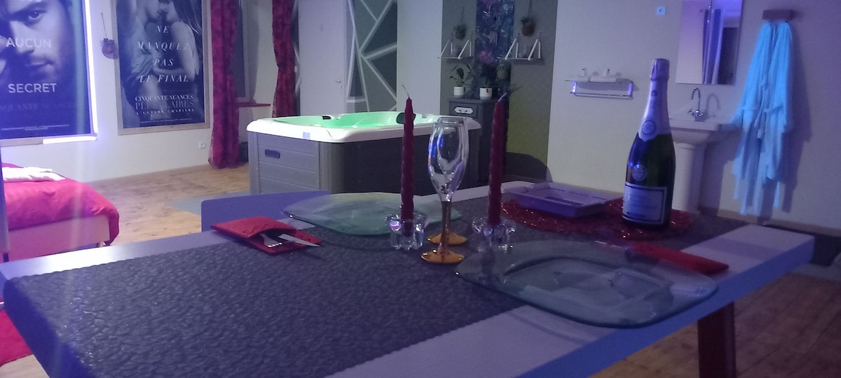 För en natt, en helg eller en vecka, kom och ladda batterierna i en varm trästuga, på stolpar och med alla bekvämligheter! Du kommer att njuta av en para-hotelltjänst, sängen (queen size) är bäddad, handdukar tillhandahålls, städning och desinfektion av rummet ingår. Det stora badkaret lovar dig stunder av avkoppling. Köksområdet gör att du kan vara självständig.