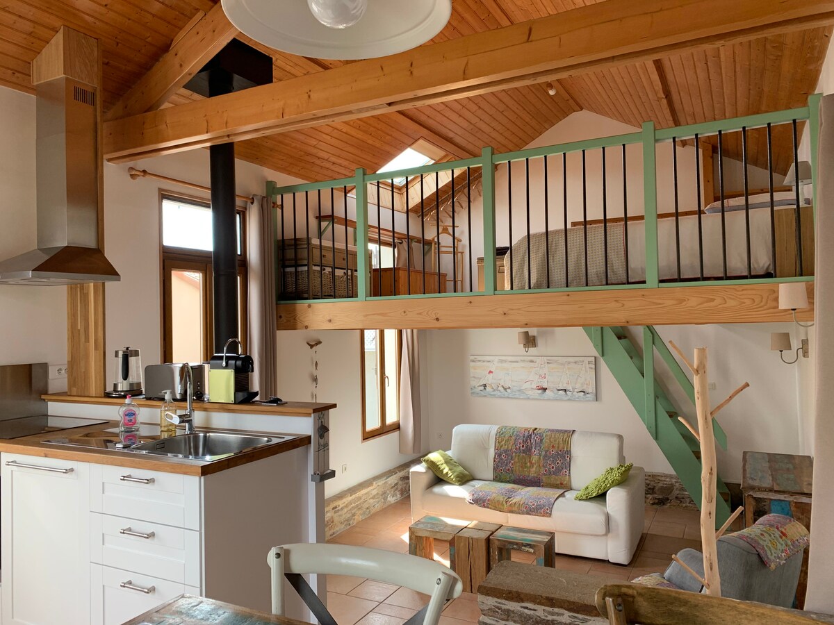 Unna dig en paus utanför tiden på Gîte Onirique: en charmig bondgård från 1700-talet, med stenmurar och öppen spis. 15 minuter från Nantes, lugnt, med trädgård ett stenkast bort, utrustat kök och självständig incheckning. Perfekt för ett par som söker avkoppling, natur och en atypisk plats med möjlighet till en barnsäng (queen size-säng + bäddsoffa) En bäddsoffa 140 × 190 kompletterar sovplatsen Kapacitet för högst 4 personer Mjuk och varm atmosfär.